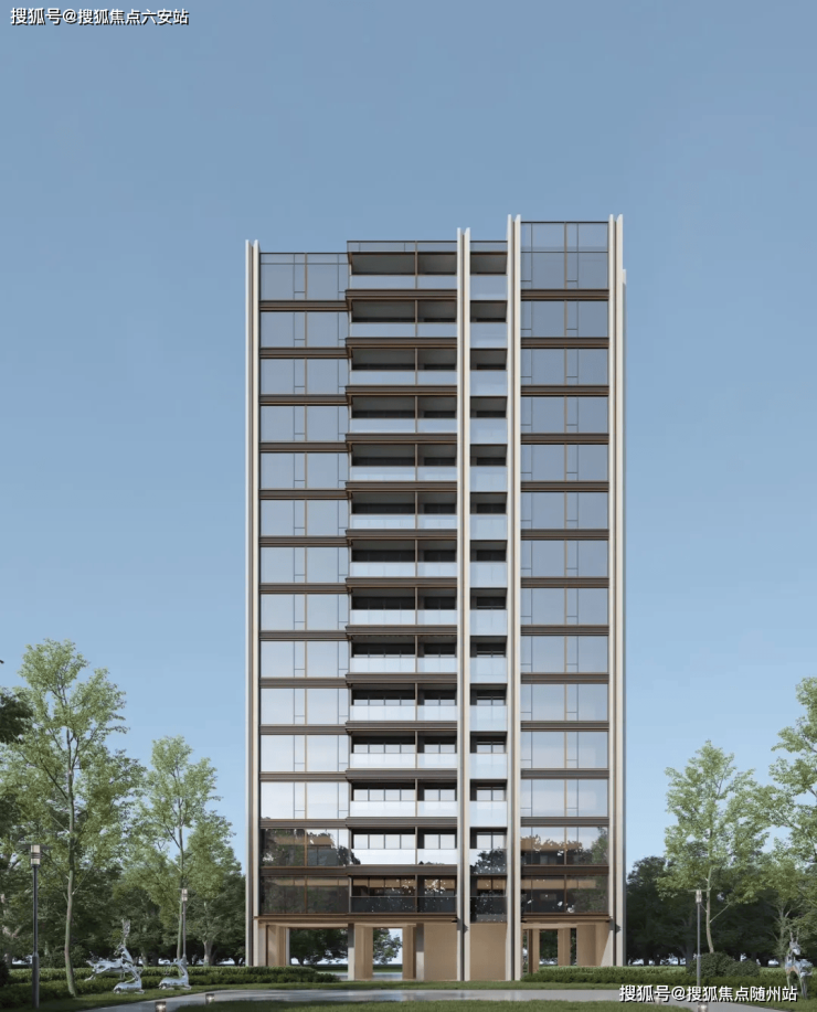 高层外立面采用四面仿石铝板+茶金色Low-E玻璃,打造五公里内地标级建筑。