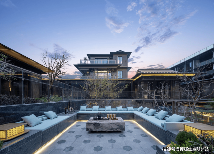 再融合传统合院的歇山重檐、寓意福瑞的纳福悬鱼、古朴典雅的黛墨青瓦,以及错落有致的瘦金披檐、翠意盎然的怀翠亭、依山傍水的倚山阁等经典元素,现代建筑中注入古典东方文化的精髓,营造出一幅古今交融的和谐画卷。