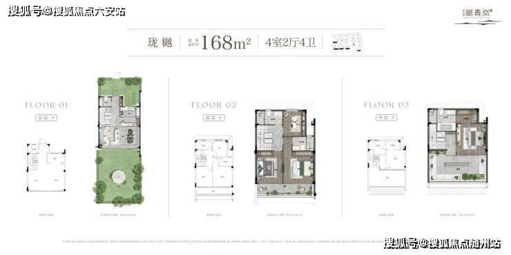 #### **建面约168㎡「珑樾」:四房三卫,得房率96%**