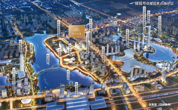 🔵 环秀湖畔的苏州大剧院,将打造成江南文化新地标。如意湖畔,苏州国际会展中心待建中,主要承担会务会展功能,并布局文化绿心,涵盖当代艺术馆、美术馆、文化体育中心等功能,打造苏州市级文化及体育休闲集群,场馆集群具有地面、空中双层步行漫游网络,整体设计与绿心融为一体,打造绿色生态发展标杆。