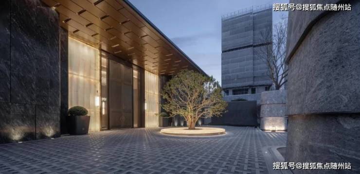 步入实景示范区,近500㎡的尊奢环岛落客前庭与超尺度悬挑雨棚,大气围合,将繁华与静谧有序界定。迎面宽约30米,高约9米的阔尺门庭,搭配两侧充满张力的大尺度雅士黑金奢石,与精雕白雪公主奢石的组合立面,奢雅恢弘,还有环岛中心景观里的白玉发光玉石圆盘,与特选古桩红果冬青,为归家静伫致礼。