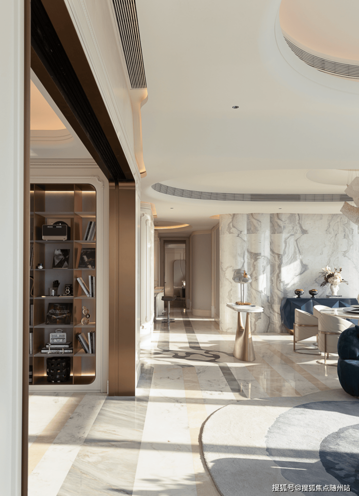 进入玄关,眼前豁然开朗。对于平层宅邸而言,视野便是一切。客餐厅的最大亮点,是一片大面落地窗外的自然江景,天地间最温柔的馈赠。设计师巧妙地解放了空间,打破了所有动线的束缚,把奢华豪邸应有的华贵气度,毫不保留地归还于每一个细节。