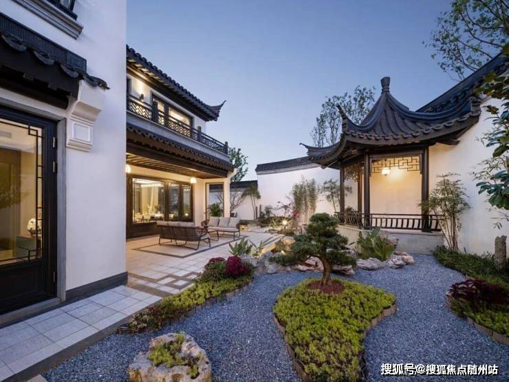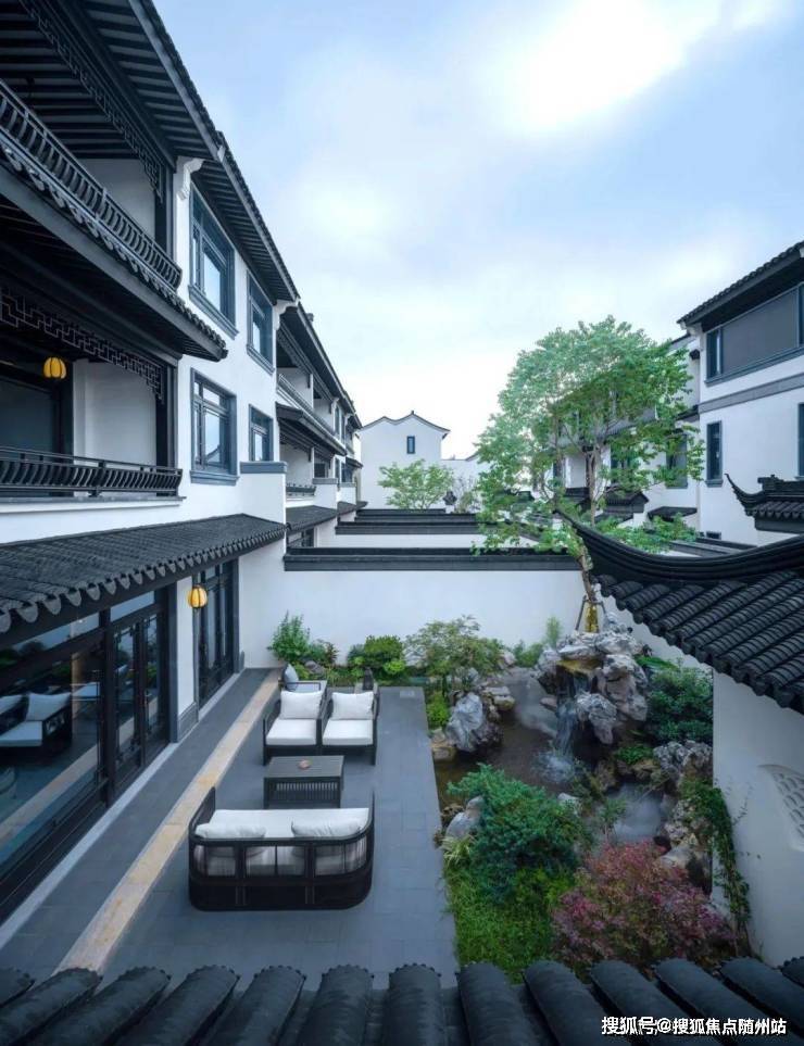 打造移步换景的江南园林雅境, 呈现“堂、巷、院、宅”四进式礼序院落。,将千年东方礼序融于一院。结合框景、对景、漏景等丰富的造景设计,营造“移步换景、如在画中”之感,汇集杭州桃李春风、安吉天使小镇等蓝城经典中式合院营造经验之大成,专为当代名人雅士打造有天有地有花园的江南院落生活。