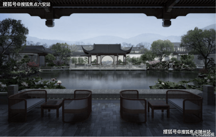 4. 山水意境: 项目充分借景外部富春山水,并将中式园林造景手法融入社区,营造出“不出城郭而得山水之怡”的居住意境。