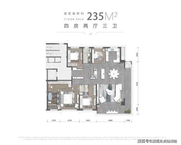 而建面约235㎡的户型,更承载着云河颂被“全城目光聚焦”的一大因素:全城仰望的超17.3米“L型”环幕阳台。