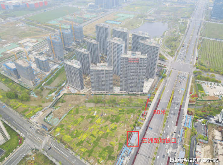 出了五洲路站,楼盘就在眼前,不到100米,两三分钟就走到了。