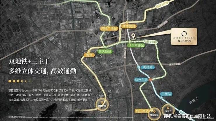 地铁:距离4、6号线双地铁交汇华中南路站(4号线已通车,6号线规划中)仅约300米,妥妥地铁盘,1站新天地商圈、5站杭州东、7站武林广场、9站钱江新城
