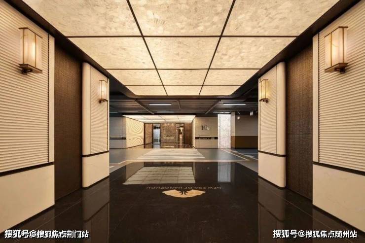 厅堂内大型水景艺术灯高悬于顶,以天为幕、气场大开,照映大理石地面,通体气派,传神东方宅邸的风骨。