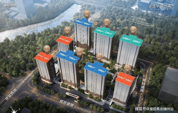 翠隐江粼的主力户型为建面约161㎡、185㎡和230㎡。所有户型均采用两梯两户设计。尤其值得一提的是,建面约185㎡和230㎡户型还拥有全明采光、景观视野出色的电梯厅。