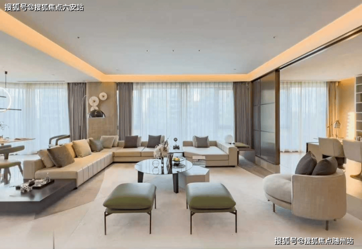 豪宅级立面:金框超流体铝板线条+270°曲面玻璃,由深圳南玻集团定制,光成本投入超千万;