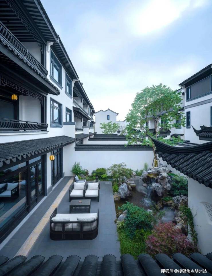 打造移步换景的江南园林雅境,呈现“堂、巷、院、宅”四进式礼序院落。,将千年东方礼序融于一院。结合框景、对景、漏景等丰富的造景设计,营造“移步换景、如在画中”之感,汇集杭州桃李春风、安吉天使小镇等蓝城经典中式合院营造经验之大成,专为当代名人雅士打造有天有地有花园的江南院落生活。