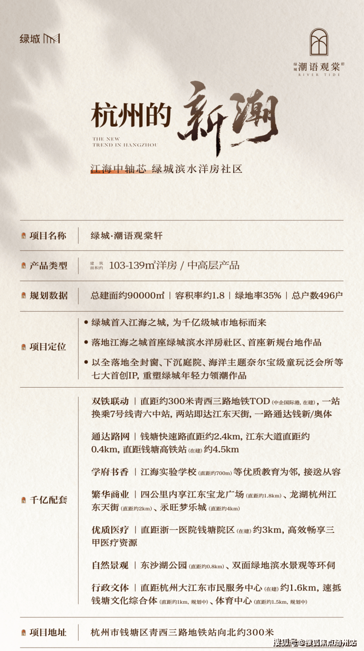 🔝🔥— ⑉ıl⑉杭州钱塘大江东江海之城板块核芯【绿城潮语观棠轩】6-7F 洋房,13-17F 中高层,直距地铁8号线青西三路站约300米⑉lı⑉—