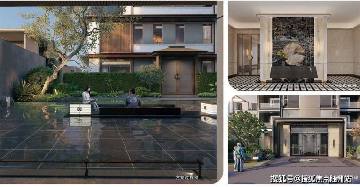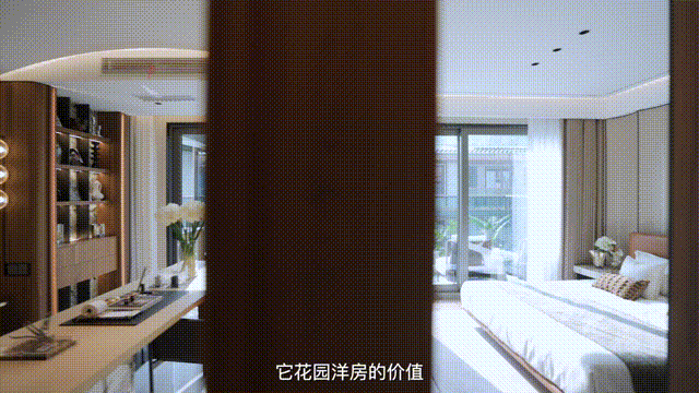 二进庭院:曲径通幽的景观设计,高大乔木、低矮灌木、盛开花卉层层递进,将城市喧嚣隔绝在外,步入"半岛谧境"。