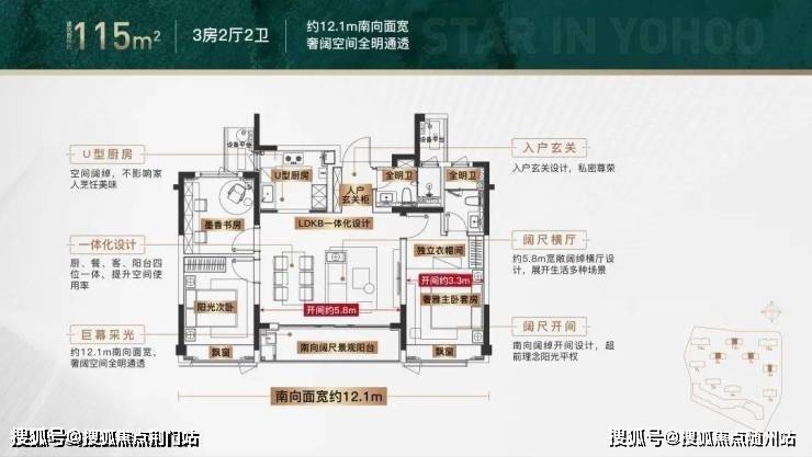 建面约117方三房两厅两卫,以三开间朝南搭配LDKB一体化阔厅,尺度彰显气势之外,与公区融合后,衍生出更多社交价值。