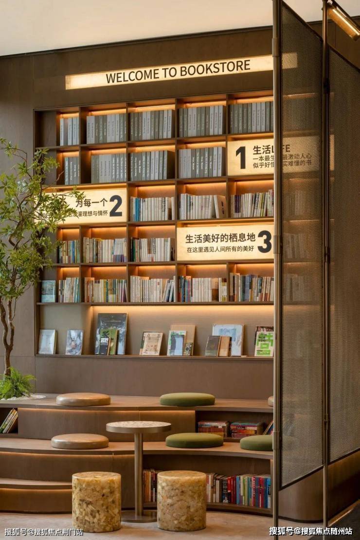 嵌在戏水池一侧的社区活动中心里,紧贴戏水池的一边特地做了下沉式书吧的设计,并且装上了超大面的玻璃,当你坐在这儿,就像漂在水上一样,很自然就放松下来了。