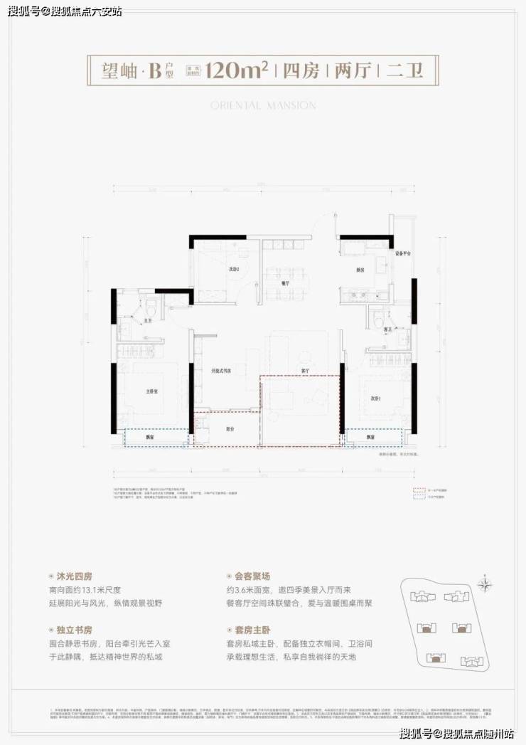 建面约120平方米户型则设计了四房且四开间朝南,南向采面极佳。而建面约139平方米大户型则打造四房两厅两卫,分为横竖两款,全部为边套,两梯两户设计。