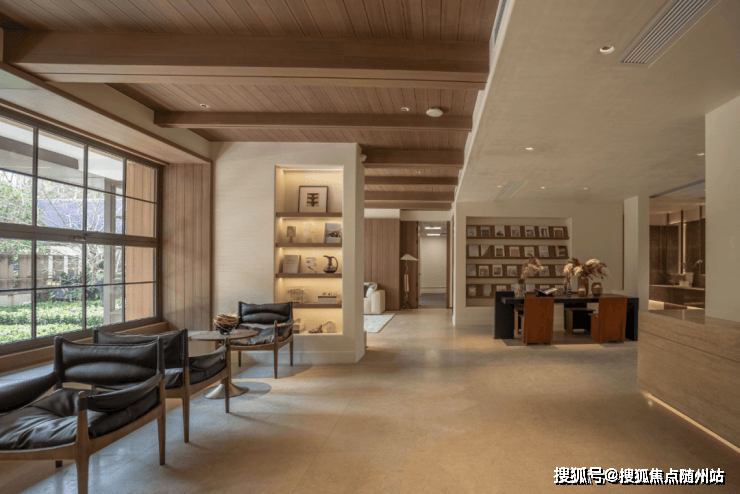 从沙发右侧望出去,窗外就是绿色的景致,等树木成长之后,会变成一个郁郁葱葱的“森系”空间,有种自家庭院的感觉。