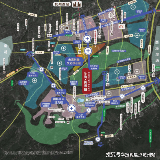东海闲湖城御龙湾傲立于杭州第三中心——未来科技城核心区,直线距离未来科技城公共中心仅约3.5公里,与阿里巴巴全球总部、VIVO全球AI研发中心(在建)、之江实验室等数字经济巨头为邻,坐享万亿级产业红利。项目占据“古今文化发展轴”黄金区位,与杭州城市中轴线(规划)深度联动,未来将承接国际体育中心、市民公园、艺术文化中心等超3000亿级配套。