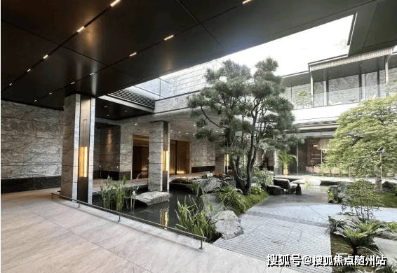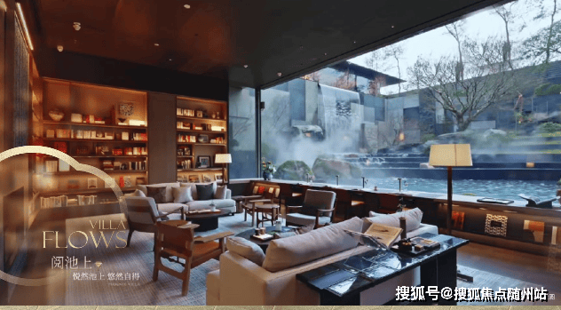 茶室:整面玻璃落地,室外水系景观庭院,喝茶静坐很雅致。