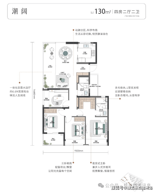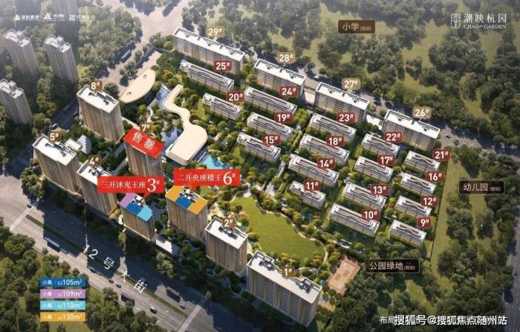 墅区小高层建筑面积约105-130㎡,为最大化景观面,突破性设计建筑面积约105㎡南向四开间。