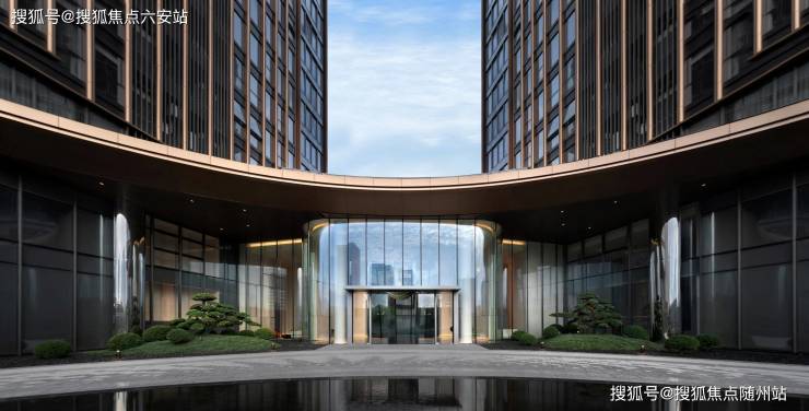 艺术风帘水幕,搭配名贵沙朴植种,彰显归家轴线的仪式感;近40米超宽挑檐大堂,以艺术作品感的形态与镜面艺术水景交相呼应,太阳纹定制铺装,营造出全球顶级酒店风格的落客区环岛,盛迎【胤璞】名仕归。