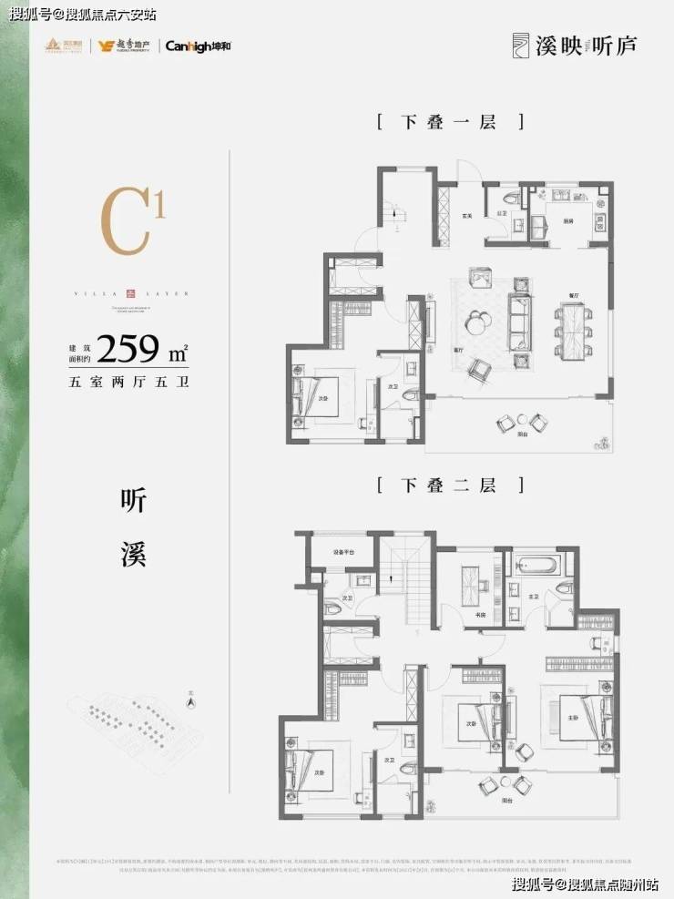 溪映听庐规划建面约200-260㎡的纯正精装改善上下叠,上叠带摘星与观山大露台,下叠带地下室坐享园林小景,同时,大面玻璃的立面设计,最大化的景观视野,万亩茶园化为窗外的胜景。