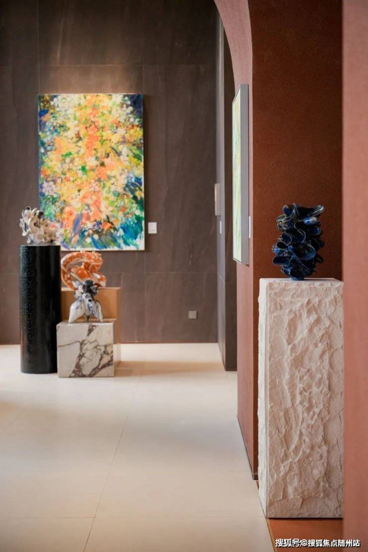 而且后期,业主也可以在这个艺展空间,通过各种主题,不定期的更换上自己的画作,从艺术的视角,寻得邻居之间的精神共鸣。这也是绿城无形中给大家传达的生活理念:一种独特的松弛感。