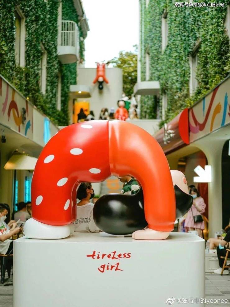 此外,绍兴天地还引进了绍兴首展——下腰女孩,采用艺术家的IP打造巨型雕塑,界定空间的同时作为场地精神堡垒,并同在印迹长廊的林下空间现场环境及建筑进行融合,打造文创艺术街区氛围,增加艺术性和时尚感。