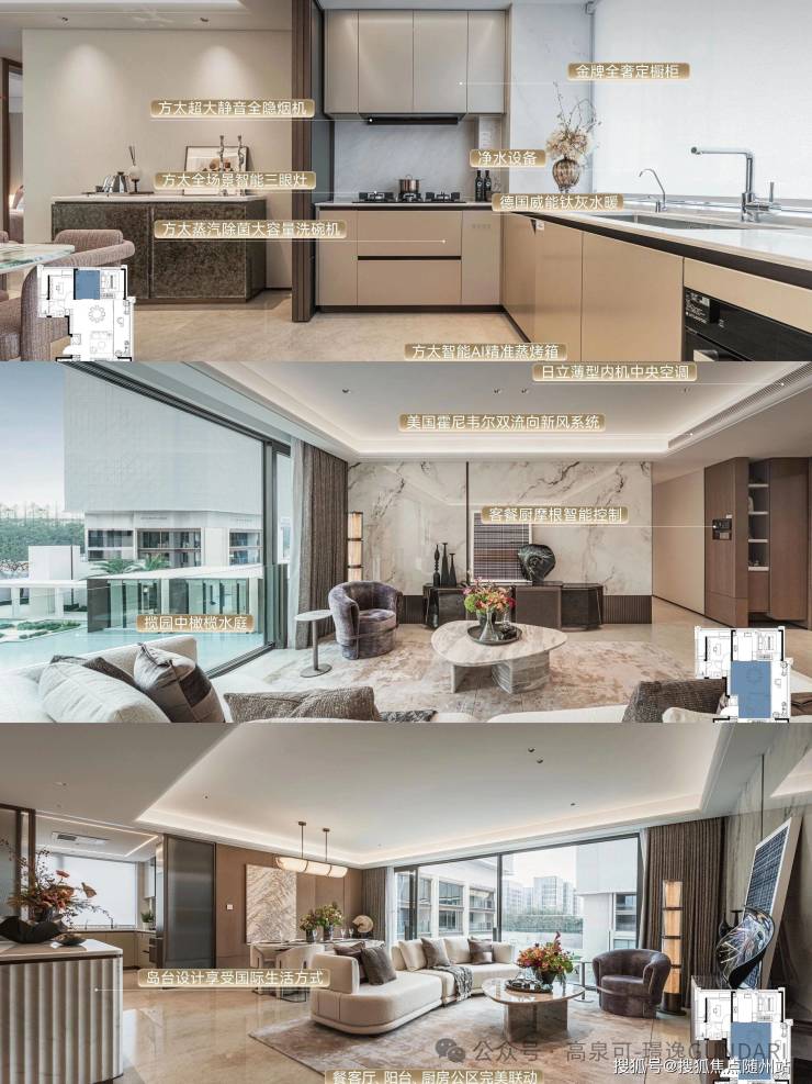🔹三大件:日立中央空调、霍尼韦尔新风、威能地暖。米欧大理石,全屋无缝墙布
