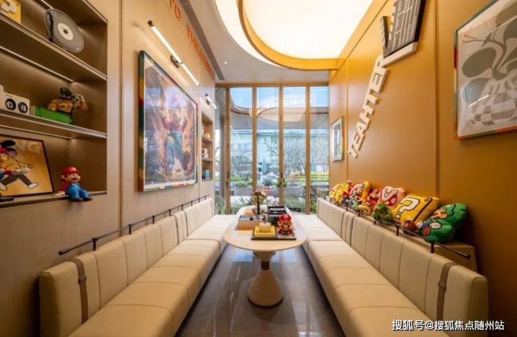 【知游弈】整体空间,设计成了多个格子空间:这里有经典游戏街机,唤回童年热血记忆,随时可与邻居来一场畅快的拳皇对决。