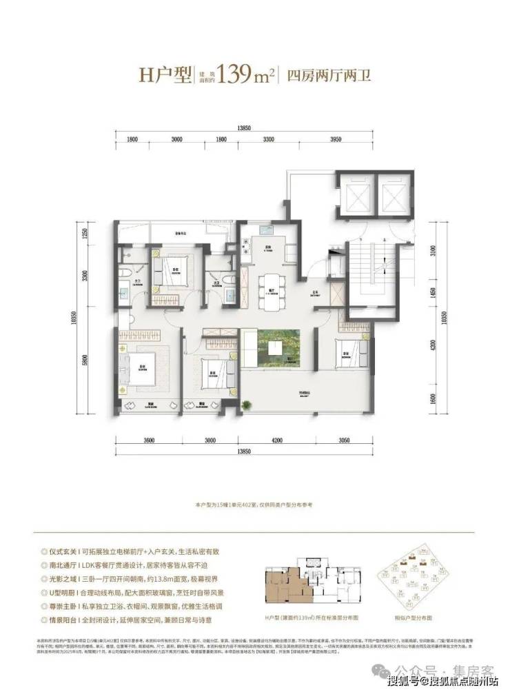如果预算再多一点,家里人多一点,建面约128㎡边套四房户型,同样也是边厅户型,空间更大,功能性更强,总价相比市面上的139㎡还是亲民了许多。此外,作为板块首个封闭式阳台的住宅项目,还是之江首个全屋五重收纳功能柜子全赠送的项目。