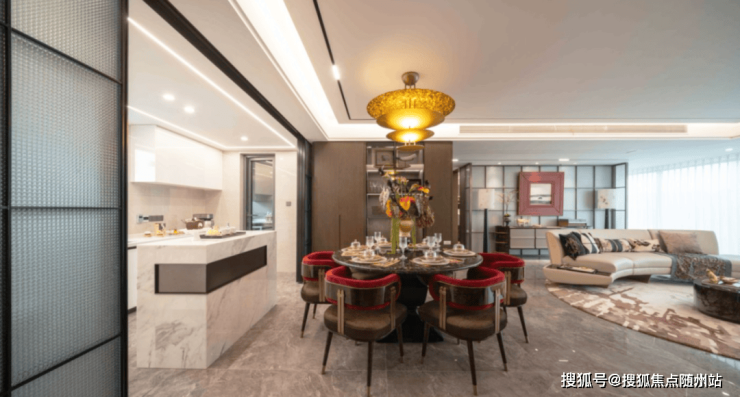 约 37㎡朗阔方厅: 成为家庭的核心欢聚场。无论是亲友宴客的从容体面,还是巨幕观影、亲子乐高的日常趣味,都能轻松承载。更与 U型厨房、阳台无界相融,形成超级社交生活中心,让空间尺度与生活舒适度双重进阶。