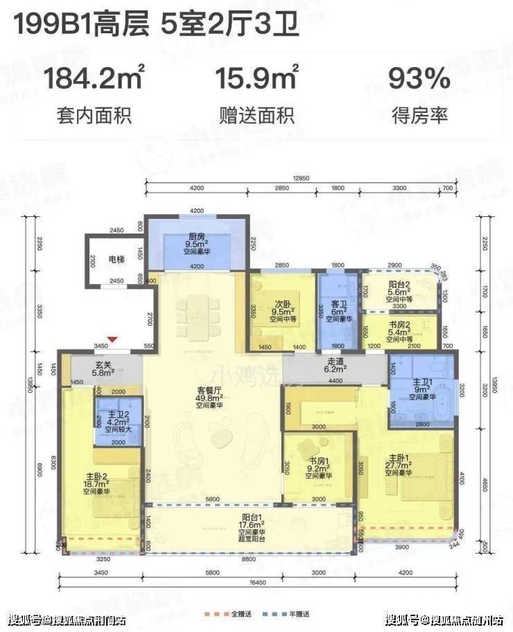 高层规划建面约169-199方的户型段保障了圈层纯粹,这个户型段过去几年来供应的新房户型差异性都非常小。