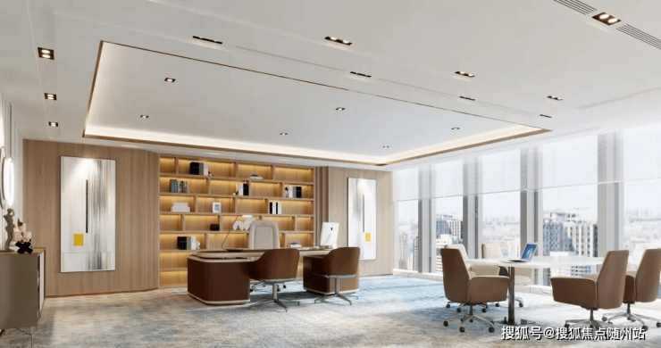 奢景办公:南侧纯天然石材匠造约3000㎡广场,恢弘大气;北侧湾畔剧场,绿荫环绕;东侧紧邻中央公园,坐拥生态绿境