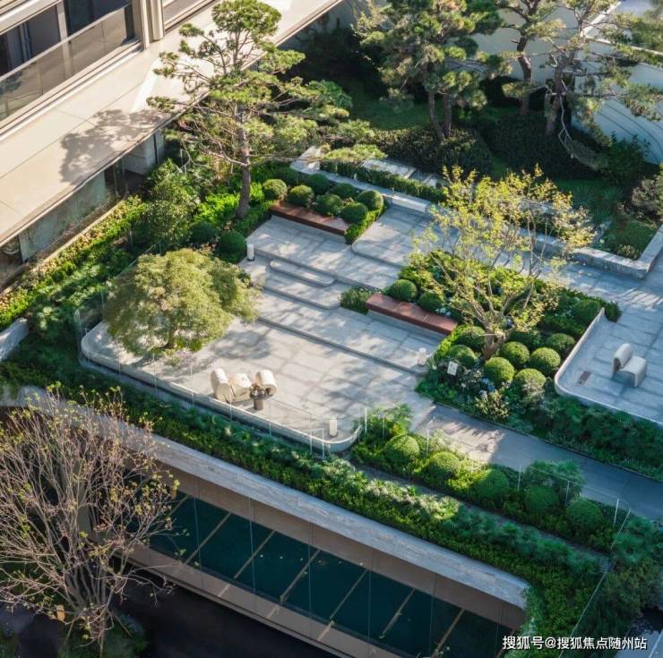 从南侧约130米绿洲长廊的艺术街区,到中央约423㎡的无界水院,再到以“溪山行旅”为灵感的下沉庭院,景观不仅是视觉享受,更是可游可赏的生活场所。