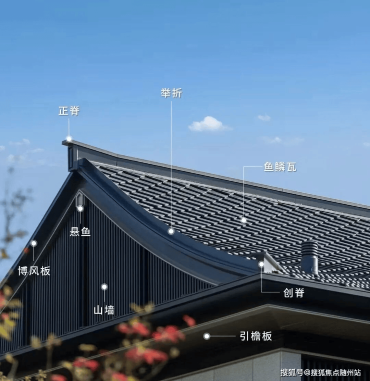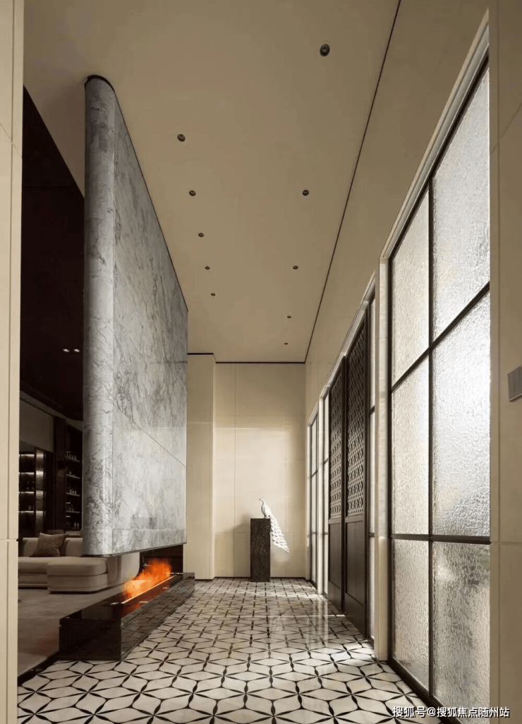 在建筑营造上,由gad张微老师执笔,延续和家园“章法天成,自然而然”理念,玺园·山前取法宋代郭熙的“三远论”,运用石材、玻璃、铝板等材质的巧妙搭配,结合正脊、戗脊、博风板、悬鱼、鱼鳞瓦等经典元素,呈现虚实相生、平远雅致的经典立面。