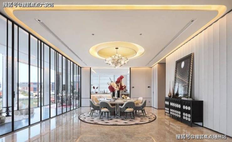 携手国际顶尖团队Gad、李建国等,以“悬浮水晶”为灵感,采用Low-E中空玻璃与阳极氧化铝板,打造建面约800㎡环幕大平层。外立面如流动的丝绸,与运河波光粼粼的倒影交织,形成“建筑即景观”的视觉奇观。