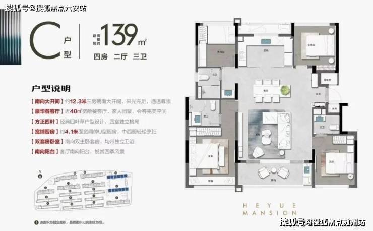 ▲前程和悦府约139㎡户型图