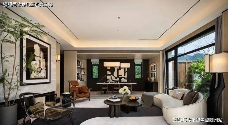 落地窗是自然的画框,精心计算的开窗角度,将庭院竹影、远山林霭框作动态壁画。清晨茶烟漫过书页,午宴笑语融于厅堂,空间在社交与家庭场景间无缝流转。