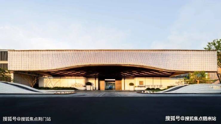 社区大门 宽约46米,高约9米,灵感源自“京杭大运河博物馆”设计,顶部大约2280块水晶瓦精心雕琢,内部超300块金鳞铝板手工拼接,还有层叠水景,整个一看就贵气。