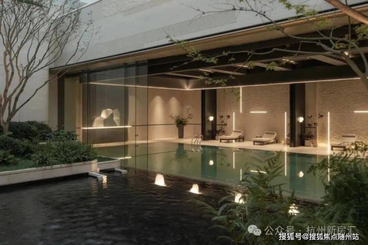 其中令人惊艳的,莫过于板块内首个“无界泳池”——通过开放式结构,与下沉庭院水系连成一片,游泳时仿佛与自然景观融为一体,再加上旁边的健身房、瑜伽室,足不出户,就能实现每周的“都市微度假”。