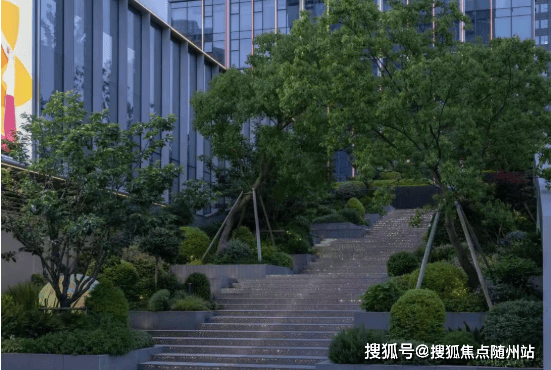 景观设计:以“山林”为主题,通过多层绿植、台阶、玻璃栈道等元素,打造立体式公园商街,营造自然与城市融合的景观体验。