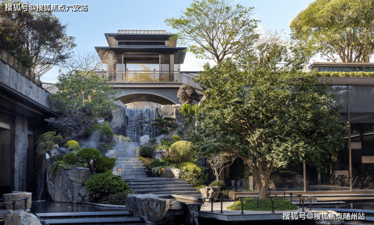 写仿西湖十景,取意郭庄形制,引湖入园、循序渐进,复现九溪烟树况味;景观中轴、风雨连廊、花园景致等将建筑与园林相融一起,依循自然缓坡地势,营造意韵悠扬的禅境园林,呈现小中见大、园中有园、景中有景、曲径通幽之境,将西湖的精致山水写仿入园,于方寸之间纳藏万千气象。