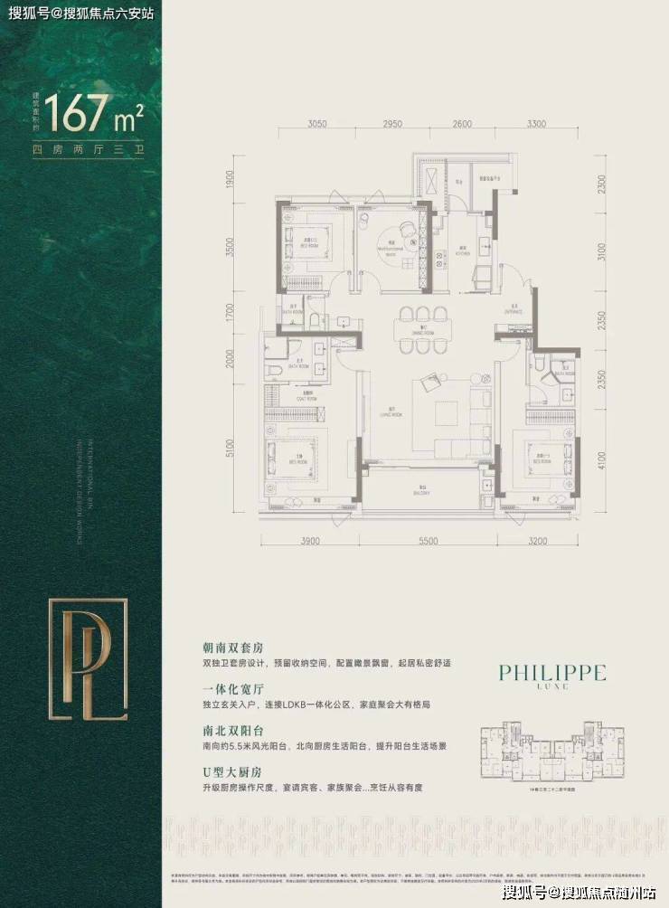 而建面约167㎡则是四房三卫格局,双套房设计,约40㎡的剧院式横厅,客餐一体,气场全开。市北、滨江的不少改善家庭,都在等它上线。