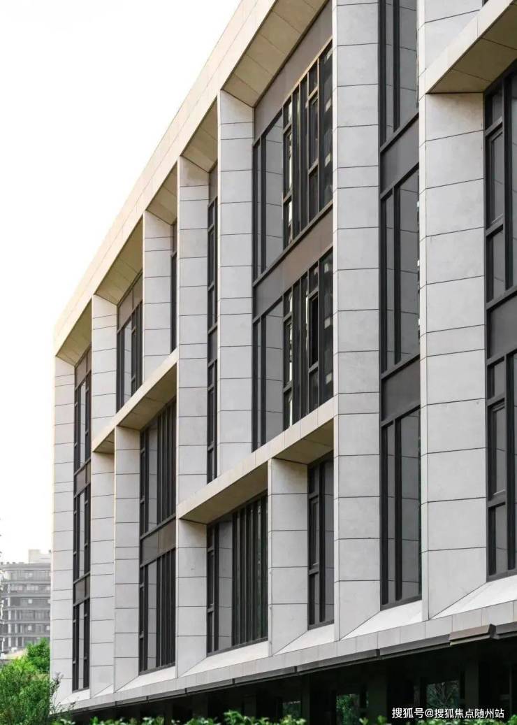 低密花园产品由美国WTAG工作室操刀设计,采用英伦极简主义建筑形制,建筑立面干挂米色石材搭配大面积玻璃幕墙,造型灵感来源于建筑大师贝聿铭的宅邸。从远处看,之江门的低密花园产品就像一块璞玉。