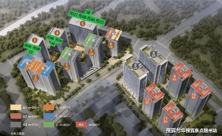 西地块占地面积约2.7万㎡,共7幢,4幢住宅(2.1.7.6 建面270-480㎡)+3幢商业产品,东地块占地面积约1.6万㎡,分为2幢自持写字楼+4幢商业产品。