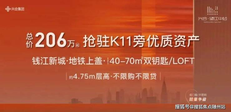 杭州钱江新城 | K11旁兴合·望江中心 | 地铁上盖,建面约40-70㎡城市核心资产。