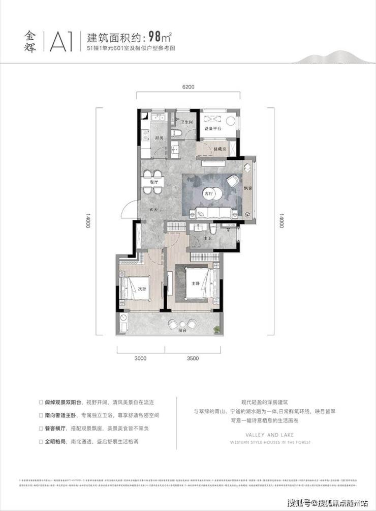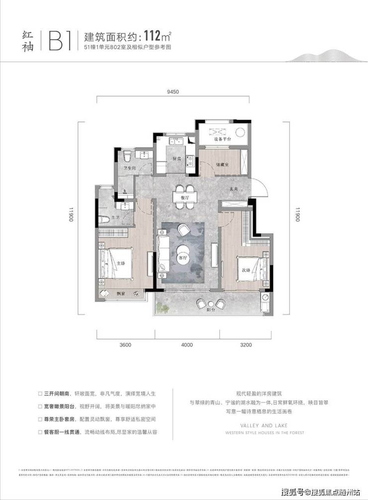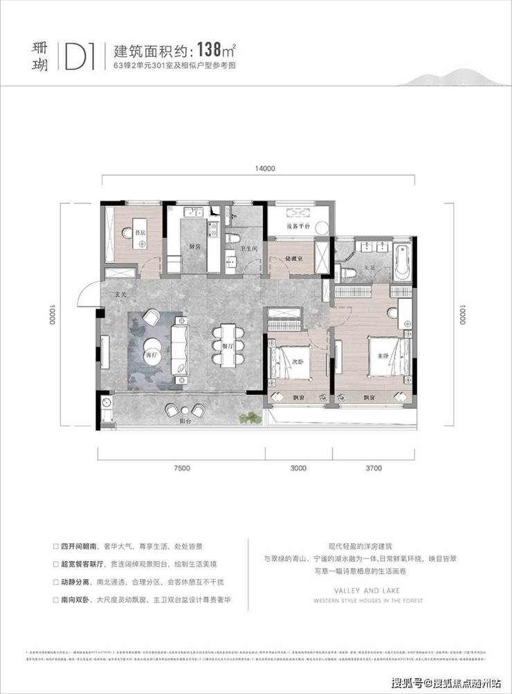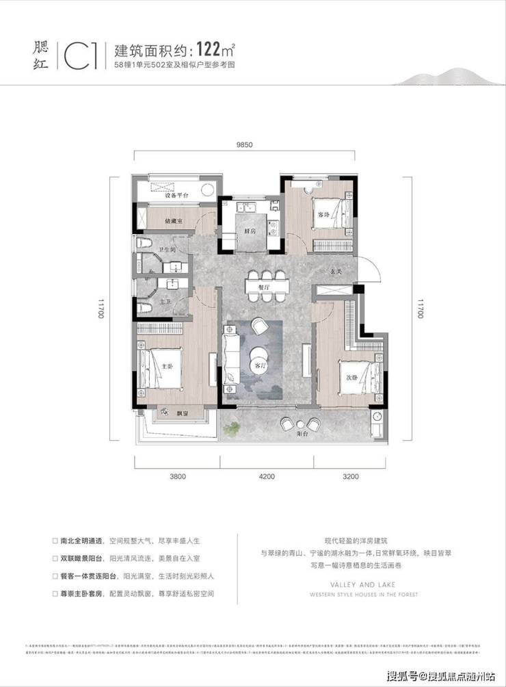 动静分离:双主卧设计(南向瞰湖+北向静区),餐客一体连接景观阳台,会客与休憩互不干扰。