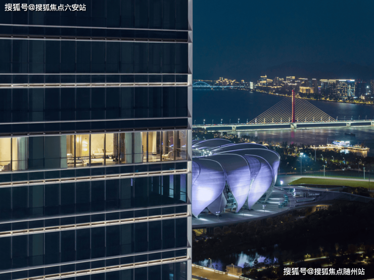 IMAX级弧形落地窗,最大面宽65米,收纳江潮、地标、山景三重盛景,部分高区可远眺西湖群山轮廓。