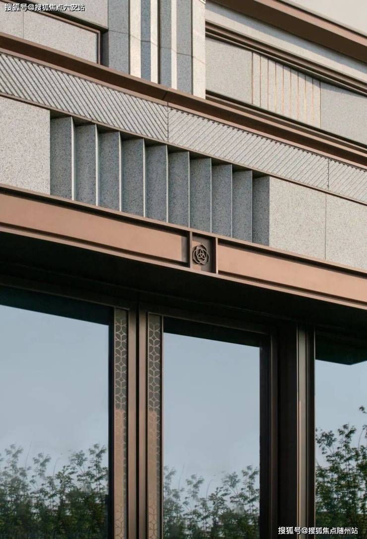 外立面:铝板为主,局部石材与多彩漆